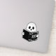 This playful Halloween illustration features a wide-eyed ghost reading a large book titled "Boo”. The design captures a mix of humour and spooky charm, making it perfect for anyone who loves Halloween with a funny twist. With its bold black-and-white style, it’s ideal for fans of ghosts reading, a quirky spooky book club vibe, or the fun idea of a ghost holding books. The simple yet expressive details give it a cute and memorable look that’s both spooky and adorable.