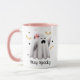 This halloween mug features a cute ghost surrounded by bats and stars in a colour palette of pastel pink and orange. The text reads 'stay spooky' but you can edit it if you prefer. See the whole matching collection.