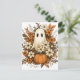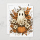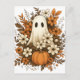 Cute Ghost With Pumpkin & Fall Flowers – Halloween Postcard