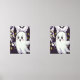 A charming and whimsical poster featuring a cute ghost holding a spooky magic wand adorned with a skull. The background showcases a haunted castle with towering turrets and bats flying around, all enveloped in a soft purple hue. This delightful blend of cute and spooky elements makes it a perfect addition to Halloween decor or to bring a playful mystery to any space.
