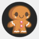 A cute illustration of a brown gingerbread man cookie. Soft pink buttons and squiggly frosting accents on his arms and legs. A festive and fun theme for the christmas holiday season.