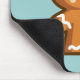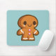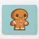 A cute illustration of a brown gingerbread man cookie. Soft pink buttons and squiggly frosting accents on his arms and legs. A festive and fun theme for the christmas holiday season.