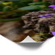 A lovely and enchanting kitten playing with flowers in a garden. A cute charming baby cat with wonderful blue eyes, photo taken by Katho Menden. This poster is a gift idea for cat and pet lovers.