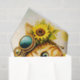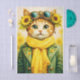 A cheerful whimsical portrait featuring an anthropomorphic ginger cat dressed in a charming vintage-inspired outfit adorned with bright sunflower details. The cat’s warm orange fur and expressive green eyes create a friendly and engaging focal point, while brass steampunk-style goggles rest playfully on its head. Sunflowers frame the portrait like a floral crown, adding a bright botanical accent that enhances the joyful character of the design. The cat wears a soft golden-yellow scarf wrapped around its neck and a richly detailed green jacket decorated with delicate embroidered sunflower motifs. These warm and vibrant elements echo the sunny theme throughout the illustration. In the background, softly faded sunflower shapes and light watercolor textures add depth while keeping the focus on the central character. The overall composition blends whimsical animal portraiture with subtle steampunk touches and sunny botanical elements, creating a bright, playful design full of personality. Artwork similar to a stylized watercolor illustration combined with decorative storybook-style character art……PERFECT FOR: Decoupage craft projects, mixed media art, handmade gifts, whimsical home décor, craft fair items, journal covers, decorative boxes, cottage style décor, sunflower themed décor, nursery décor, seasonal craft projects…. 🖤 NOTE 1. The 18 lb tissue is a great choice if you like a little extra strength—it's easier to handle, resists tearing and allows for gentle repositioning. It’s also more opaque, making it perfect for darker surfaces. The 10 lb tissue is wonderfully lightweight and flexible giving you that smooth, blended finish. It’s ideal for layering on furniture or smaller projects so treat it gently and it will reward you with stunning results!.….🖤 NOTE 2. All items with this particular design share my unique identifying “Letter/s Number/s” label in the title for easy searching. …..🖤