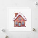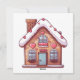 Adorable gingerbread house with hearts and snowy festive decorations.