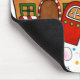Whimsical Christmas mousepad featuring a candy-trimmed gingerbread house, a simple decorated tree, a smiling teddy bear, a cheerful little mouse, and a reindeer in a bright festive scene with colorful confetti dots. Warm red, green, gold, and pastel tones give this playful holiday design a sweet storybook look for seasonal desk decor.