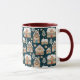Savour the holiday spirit with the Cute Gingerbread Houses & Cookies Blue Christmas Mug. This delightful mug features charming Nordic Norwegian Scandinavian-inspired festive folk art, bringing the magic of a winter wonderland to your coffee moments. Adorned with gingerbread houses, Christmas cookies, and a whimsical candyland theme, it showcases delicate snowflakes and retro vintage rustic watercolor designs. The rich palette of dark blue, sand brown, and red, accented by festive Christmas pine trees, creates a cosy and sweet holiday vibe—perfect for every sip this season!