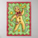 Cute Gingerbread Man Blowing Horn, Christmas Candy Poster