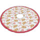 This fun Christmas tree skirt has a pattern of gingerbread man cookie images, red and white candy canes, and stick candies. The images are placed on a white background, with a matching red border. Appealing to kids of all ages for the Holiday season!