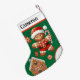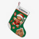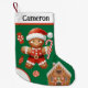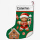 Create memories to cherish with this delightful Christmas stocking featuring a happy gingerbread Santa in his classic red suit and hat. The festive green background bursts with gingerbread houses, candy, and holiday charm, making it a perfect addition to your seasonal décor. Customise it with your child's name for a keepsake they'll adore year after year. Don’t miss out—order today and make this Christmas unforgettable!