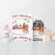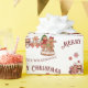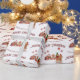 This festive custom Christmas or holiday wrapping paper features a wholesome gingerbread theme. An image of a Christmas train is pictured in the centre, with a cute little gingerbread man riding in one of it's carts. A family of gingerbread people is pictured standing in front of the train. Little red snowflake cookies are snowing from the sky. A sample Merry Christmas greeting is printed above the tree and a sample family name is printed below. You can personalise the gift wrap to include your own custom name or text.