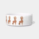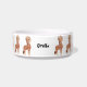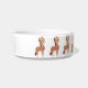 This is a heavy, durable bowl decorated with Tibbies of many colors, the perfect size for hungry/thirsty Tibs. The design is interesting and printing clear.