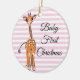 Cute giraffe drawing, safari animals, pink stripes ceramic tree decoration