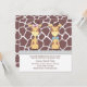 Cute boy and girl giraffe gender reveal shower invitations. This adorable brown and beige baby gender reveal party invitation has a cute girl giraffe and boy giraffe on a brown and white background. Add your details to the front and/or back by adding your event details, font style, font size & colour, and wording.