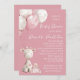 Celebrate the arrival of a little lady with this elegant and whimsical baby shower invitation! It features a graceful giraffe in a delicate French Toile de Jouy style holding soft pink balloons and a sweet teddy bear peeking out from a gift box. The vintage-inspired pattern adds a touch of timeless charm, while the playful characters bring warmth and joy to your celebration. Perfect for tea parties, garden gatherings, or any shower with a classic-meets-cute theme.