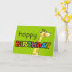 Cute giraffe birthday card, the background colour is customisable. You can easily personalise this design by pressing the "customise it" button.
