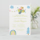Cute Giraffe pilot in an aeroplane above the clouds inviting your guests to a baby shower for mum to be. Fun graphics make this baby shower invite stand out. Easily add your party details using the easy template. Click on personalise button.