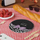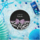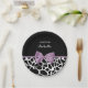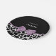 Cute black and white giraffe print paper plates with a girly lavender purple ribbon tied into a feminine bow. Personalise this pretty animal print design by adding the name of the party girl. Flat printed image, not actual bow.