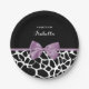 Cute Giraffe Print Lavender Purple Bow With Name Paper Plate