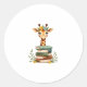 Cute Giraffe With Book Floral Bookworm Librarian B Classic Round Sticker