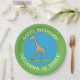 From the happy safari. This cute giraffe has a butterfly on his nose with a blue background.