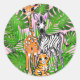 Cute giraffe zebra tiger jungle friends classic round sticker
