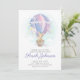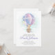 Cute Watercolor giraffes in pretty pink and purple pastel Hot Air Balloon Baby Shower Invitation, easily customise with your own information for the momma-to-be's special day.