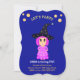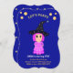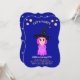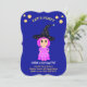 Cute girl birthday Invitation with star pattern on royal blue background on the back side. Ideal for Birthdays and Halloween celebrations. All texts and numbers are ready to be personalised.