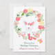 Cute Bunny Rabbit Sitting in a Wreath with Flowers, Butterfly and Carrot Birthday Party Invitation for Girls. Great invite for spring, summer and the Easter holiday. It can be personalised with all of your party details.