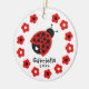 Dated Cute red & black ladybug girl Christmas Ornament set on a white background framed with red flowers. A Wonder Christmas gift sure to be treasured for many years to come.