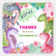 Cute Girl Dinosaur 4th Birthday Thank You Square Sticker