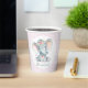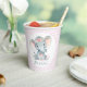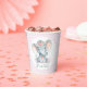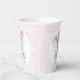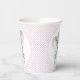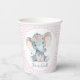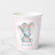 Girl elephant baby shower paper cups with cute watercolor elephant with pink flowers on a pretty watercolor pink dot background. You can add the text of your choice.