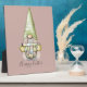 Modern and cute Easter greeting features adorable girl Tomte style gnome holding wire basket filled with pastel eggs and customisable Happy Easter text on mauve background