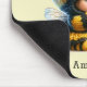 Mousepad with a cute image. A girl in a crocheted bee costume with a bee by her side. Watching over a jar of honey.