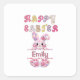Cute Girl Personalize Happy Easter Bunny Square Sticker