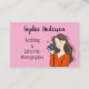 Make a memorable first impression with this adorable and unique business card! This design features a charming, hand-drawn illustration of a friendly girl with a camera, capturing a moment with a whimsical, artistic flair. The cute and approachable style is perfect for professional photographers, artists, or any creative professional who wants to convey a warm and personal brand identity.