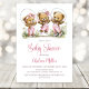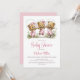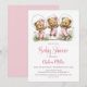 Celebrate the imminent arrival of your bundle of joy by inviting your friends and loved ones to your baby shower with this invitation featuring three adorable teddy bears wearing pink overalls playing jump rope.. The customizable text allows you to effortlessly add your name, date and time of the celebration, and the RSVP information. A variety of paper types and corner styles are available for your unique invitations, along with the option to download if you prefer a digital format.