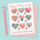 A cute pattern of watercolor hearts decorates this Valentine's Day note card. Personalize it for your friends or classmates for a Valentines Day gift exchange. Designed for you by Blackberry Boulevard.