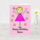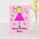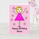 Cute Girl with Hearts Pink Cartoon Birthday Card