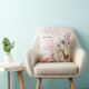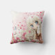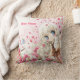 Cute girl with white cat on pink flowers field cushion