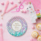 Celebrate your little girls 2nd birthday party with these cute mermaid themed paper plates in pink, purple and teal design with gold typography. A pretty finishing touch to your mermaid birthday party decor. Order yours today!