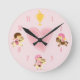 Cute Girls and Ponies with English Tack Pink Horse Round Clock