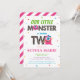 Unleash the fun with this Cute Girls Pink Monster 2nd Birthday Party Invitation! "Our little monster" birthday invitations are a digital template, so all you need to do is just add your party info and get ready for a monstrously good time – personalise, order now and let the celebrations begin!