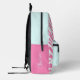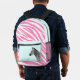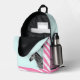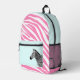 A fun zebra pattern with pink and white stripes and mint blue colour to compliment on the top of the bag and front pouch with an adorable picture of a black and white zebra making this a cute back to school gift for girls. Personalise your name or monogram on this bag easily using the text template to add your text to the left side of the design. Stylish and girly, this bag is ready for adventure!