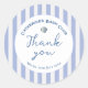 Cute Girly Blue Coastal Cowgirl Stripe Thank you Classic Round Sticker