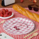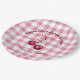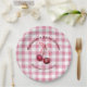 Cute Girly Bow Cherry Pink Gingham Plaid Name Paper Plate