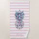 Cute Girly Colourful Pineapples Pink Stripes Beach Towel