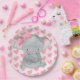 Cute Girly Elephant Pink Bow Birthday Party Paper Plate