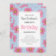 Cute Girly Flowers Pastel Pink & Blue Birthday Inv Invitation