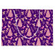 A fun, cute purple Indigo Pink Christmas wrapping paper set with Christmas Trees, gnomes, gifts, and snowflakes.